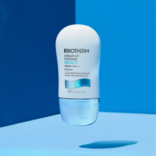 Biotherm Urban UV Defense Protective Hydrating Fluid SPF 50+ pruža naprednu zaštitu od sunca uz istovremenu njegu i hidrataciju kože. Obogaćen Life Plankton™ i hijaluronskom kiselinom, ovaj lagani fluid štiti kožu od UVB i UVA zraka, istovremeno je čineći gladom, hidratiziranom i otpornijom na vanjske utjecaje.